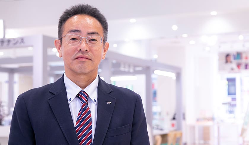 30年間の店舗経験を経て、スタッフの接客技術指導を行うテクニカルトレーニンググループに所属。現在はフィッティングをはじめとしたスキルを、眼鏡市場の各店舗に伝達している。全国の店舗を回るため、年間の出張回数は100回以上。