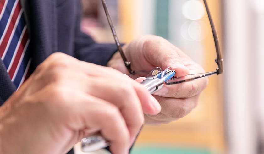 森さん「どこか一点に無理な力が加わって、フレームがゆがんでしまうケースもあります。たとえばいつも片手でかけ外しをしたり、メガネをしたまま着替えをしてシャツが引っかかったり、レンズを拭くときにテンプルを持ってしまったりですとか――」