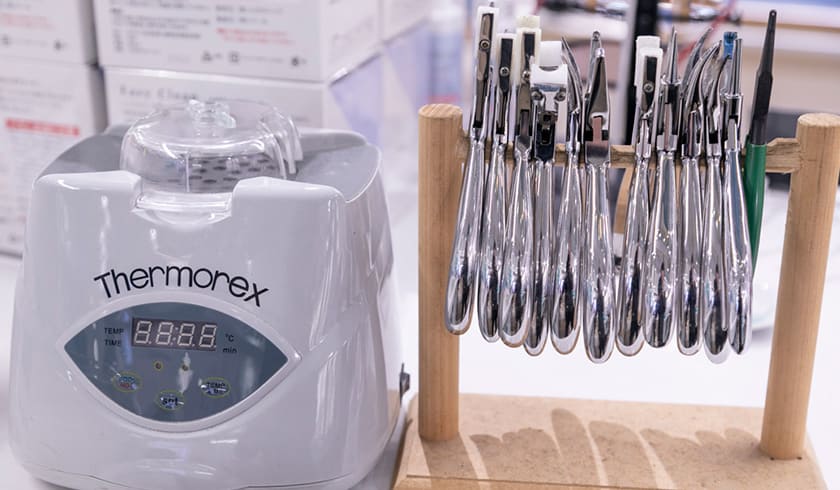 ここで鼻あての幅や上下を調整。ペンチのようなメガネ調整専用工具を使いながらも、繊細さが求められる作業です。